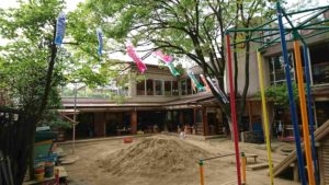 お昼寝から目覚めると園庭に鯉のぼりが!