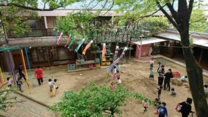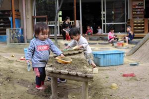 1歳児の園庭遊び。