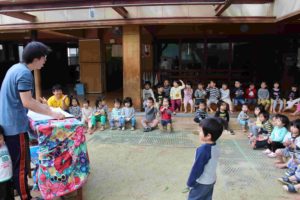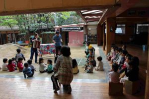 アコーディオンで歌を歌って、お話を読んでもらって。