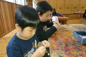 年長クラスの「雑巾縫い」が始まりました。