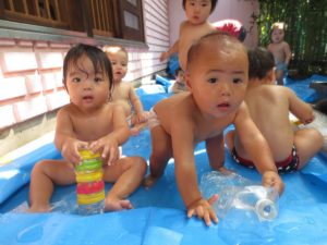 今年は0歳児の先生たちが『忍にん修行露天風呂』を作ってくれました!