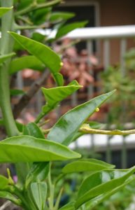 みかんの木の葉に卵を産みに来ています。