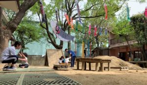 (園庭の鯉のぼり)