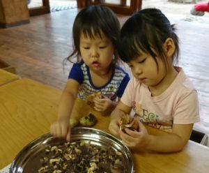 今日の午前中に「ひまわり」の種をもらった2歳児はと組の子どもたち。