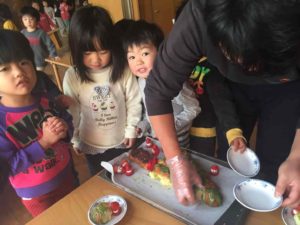 末次保育園では『子どもたちに豊かな文化性を育てる』ための一環として、子どもの日とクリスマスの日に子どもたちへ「人形劇」のプレゼントを贈っています。