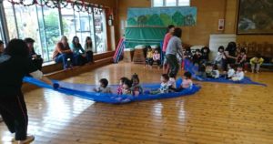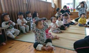 未満児リズムの時の、0歳児ひよこ組の子どもたちの様子です。