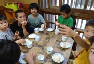 粘土遊びでの子どもたちです。