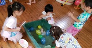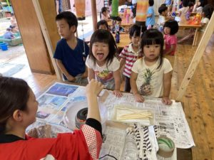 午前は各クラス単位や合同で遊んだりと、あちらこちらで『夏まつり』がスタートしました。