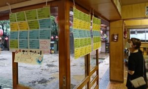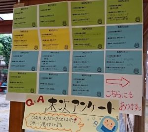 幼児棟1階廊下タッチパネル付近に、「夏まつり壁新聞」のほかに、皆さんの『コロナアンケート結果』が掲示されました。