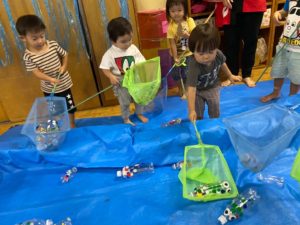 磁石の魚釣りも集中して釣れたときは、とても嬉しそうにしていました!