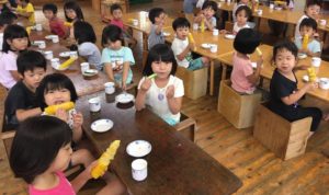 調理室の先生が、子どもたちの年齢に合わせて『大きさ』を変えて提供してくれました。