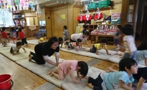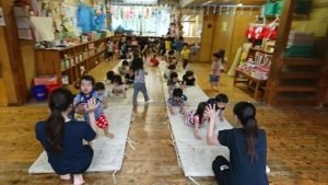 そんな中でも子どもたちが楽しく存分に身体を使って遊べるように、様々な工夫で雨を乗り切っています。