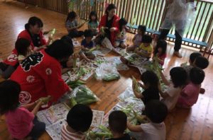 皮むきのお手伝いを3~5歳児クラスに頼みました。
