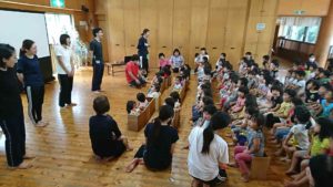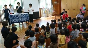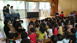 歌を歌って、きれいな音色のハンドベル演奏を聞いて、「七夕」のお話をしてもらいました。