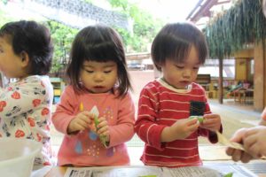 こちらは3歳児つばめ組の子どもたちの「まめむき」の様子です。