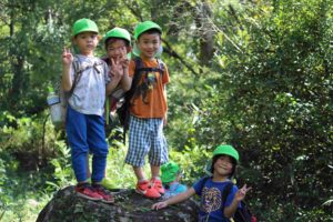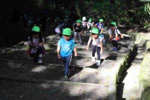 初めての山登りにもかかわらず、たくましく登りきった4歳児の子どもたち。