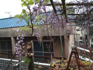 ベランダに「藤」の花や「コデマリ」が顔を見せ始めました。
