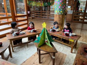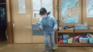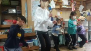はと組もみんなで大掃除をしました。ぞうきんくんがはとぐみに来て…「ひとりじゃそうじできないの〜」と困っていると「手伝う〜」「一緒にする〜」と床や窓、イスなどみんなでピカピカにしてくれました。