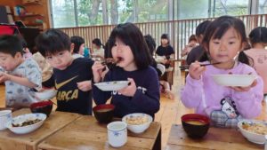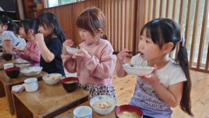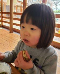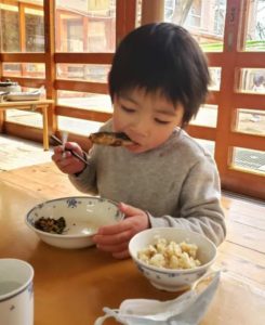 5歳児の子どもたちは、イワシのほかにシシャモを目の前で焼いてもらいました。