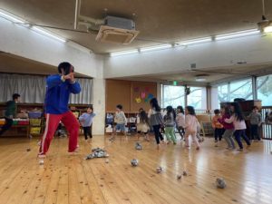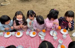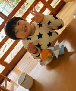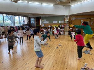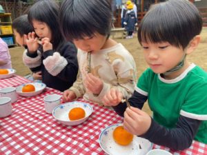 突如現れた鬼におどろく4歳児の子どもたちでした。