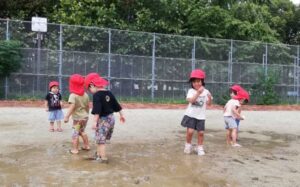 おへそを出しながら「かみなりさ~ん!」と叫ぶ2歳児の子どもたち。