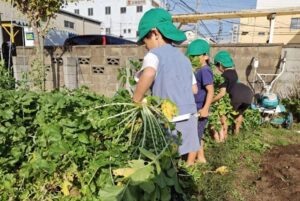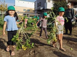 「袋縫い」の作業の合間をぬって、「大根の収穫」です。