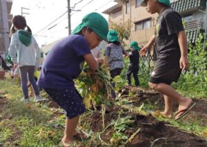 保育園のまわりの公園は『落ち葉』でいっぱいです。