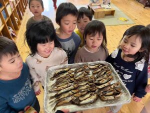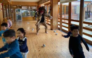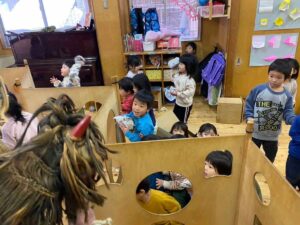 今年の『節分』は男性職員扮する「おに」が各クラスの子どもたちのところへやってきました。