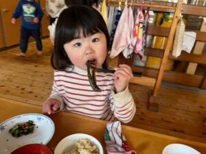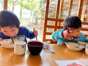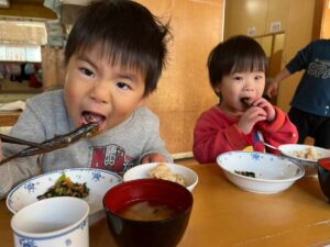 おにが外に出ていった後の給食の美味しいことおいしいこと。