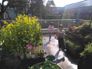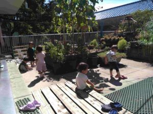 ベランダで遊んでいた子どもたち。