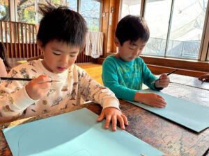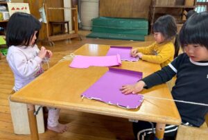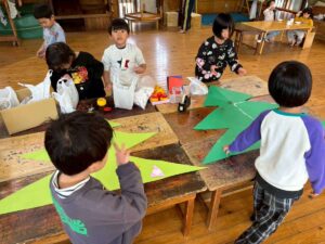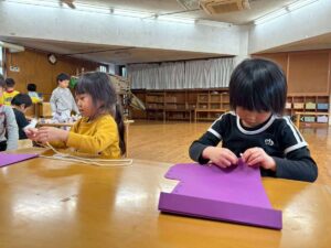 サンタさんにプレゼントを入れてもらう「ブーツ」を作っています。