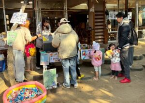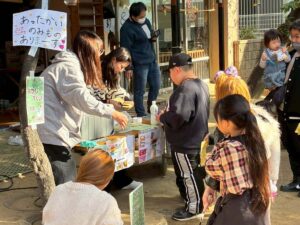 食べ物・物販・あてものやひも引き、輪投げなどの子どもの遊ぶ店などなど、たくさんのお店で大盛りあがり。