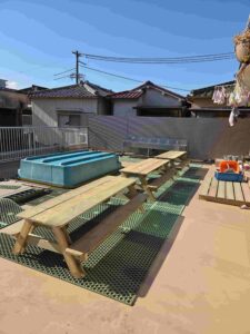 『子どもたちの憩いの場』になればと思い、「給食やおやつを食べれるようにしよう!」ということで、年明けからコツコツとテーブル作りを開始。