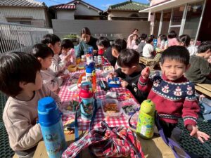 と寒いながらも気持ちのいい日差しの下でワイワイ楽しくお弁当を食べました!『また食べよな!』と嬉しい声も聞かれました。
