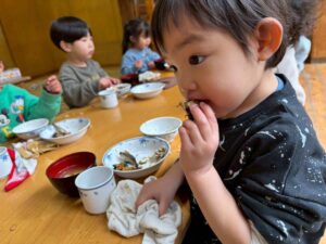 ・田舎汁見慣れない頭や骨がついたイワシに戸惑う子どももいましたが、しっかりかぶりついて食べる様子にびっくり‼︎